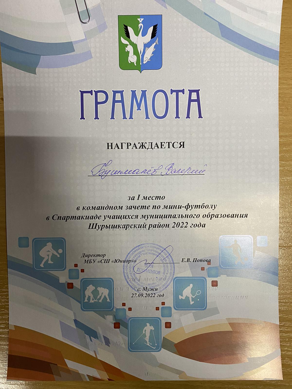 Валерий Бушмалёв , 1 место мини-футбол.
