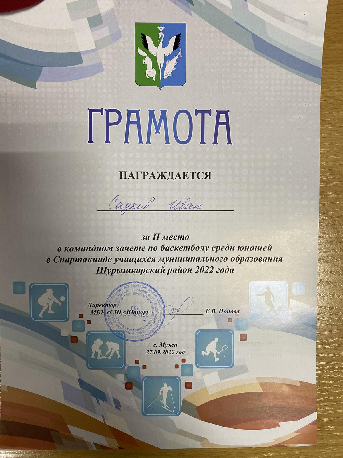 Садков Иван , 2 место по баскетболу