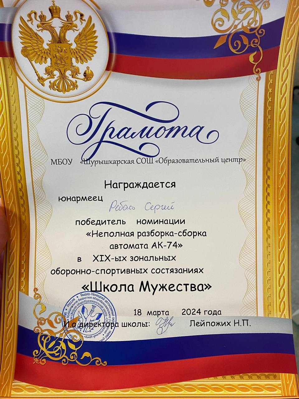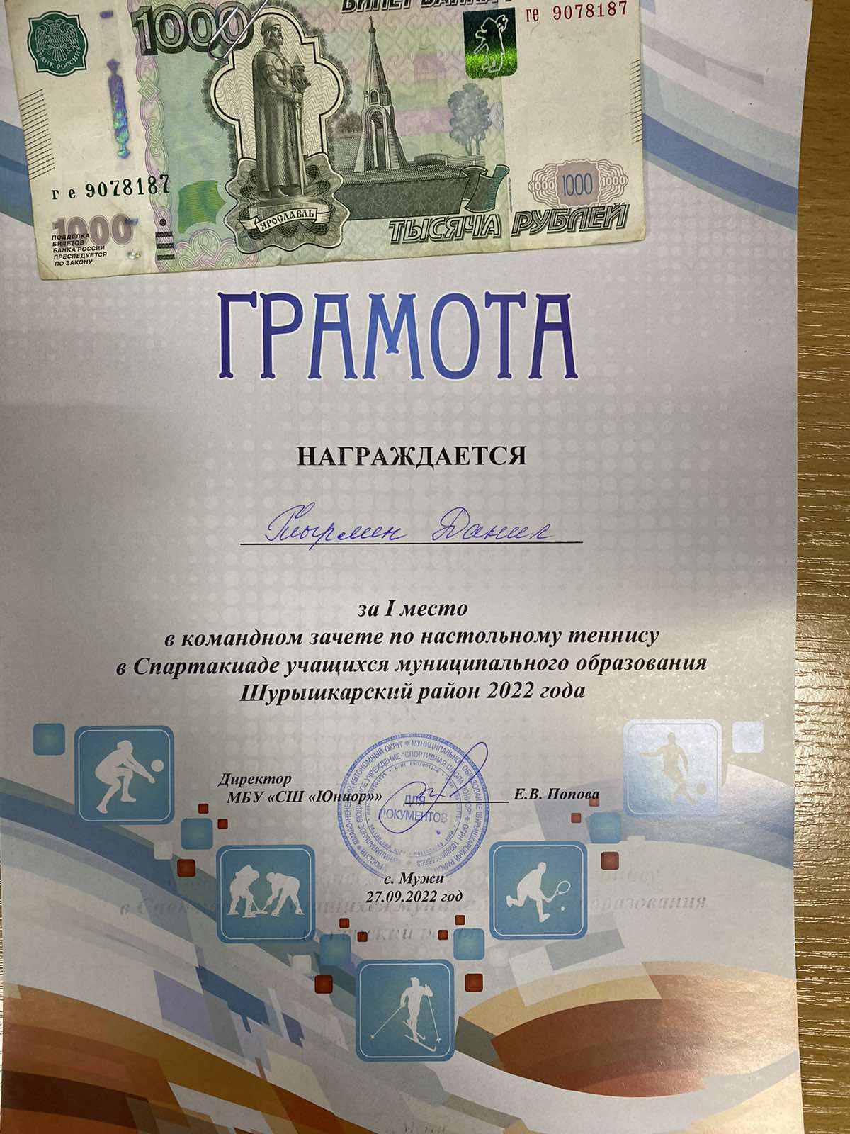 Тырлин Данил 1 место настольный теннис