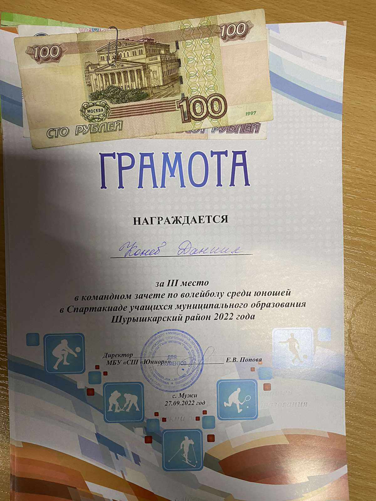 Даниил Конев , 3 место по волейболу.
