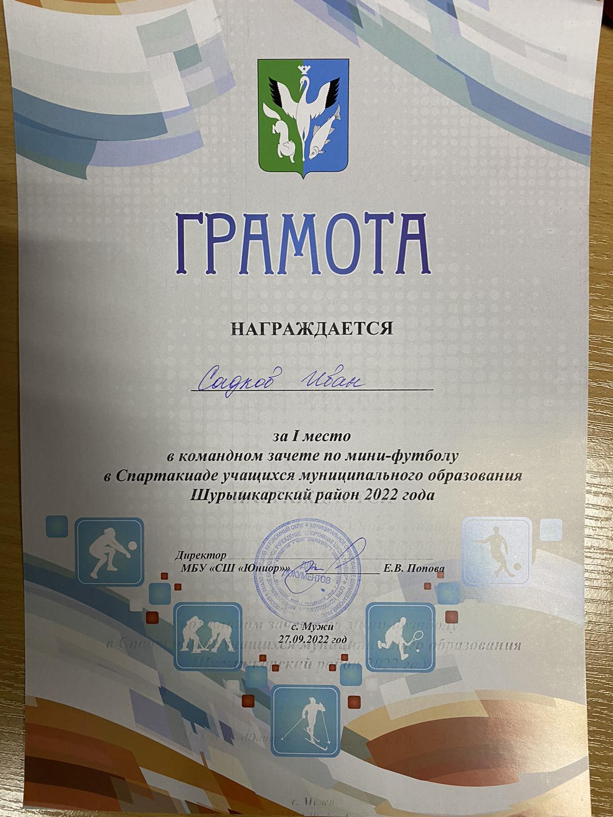Садков Иван- 1 место по мини-футболу