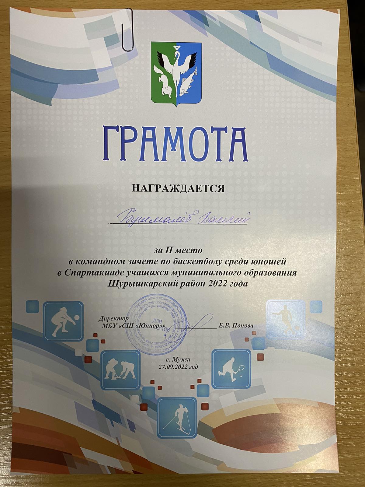 Валерий Бушмалёв, 2 место по баскетболу.