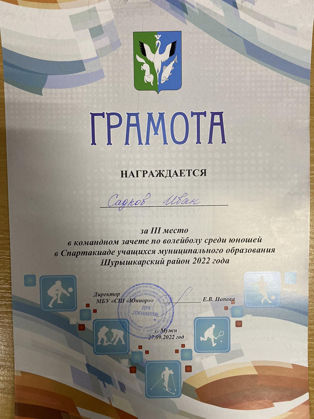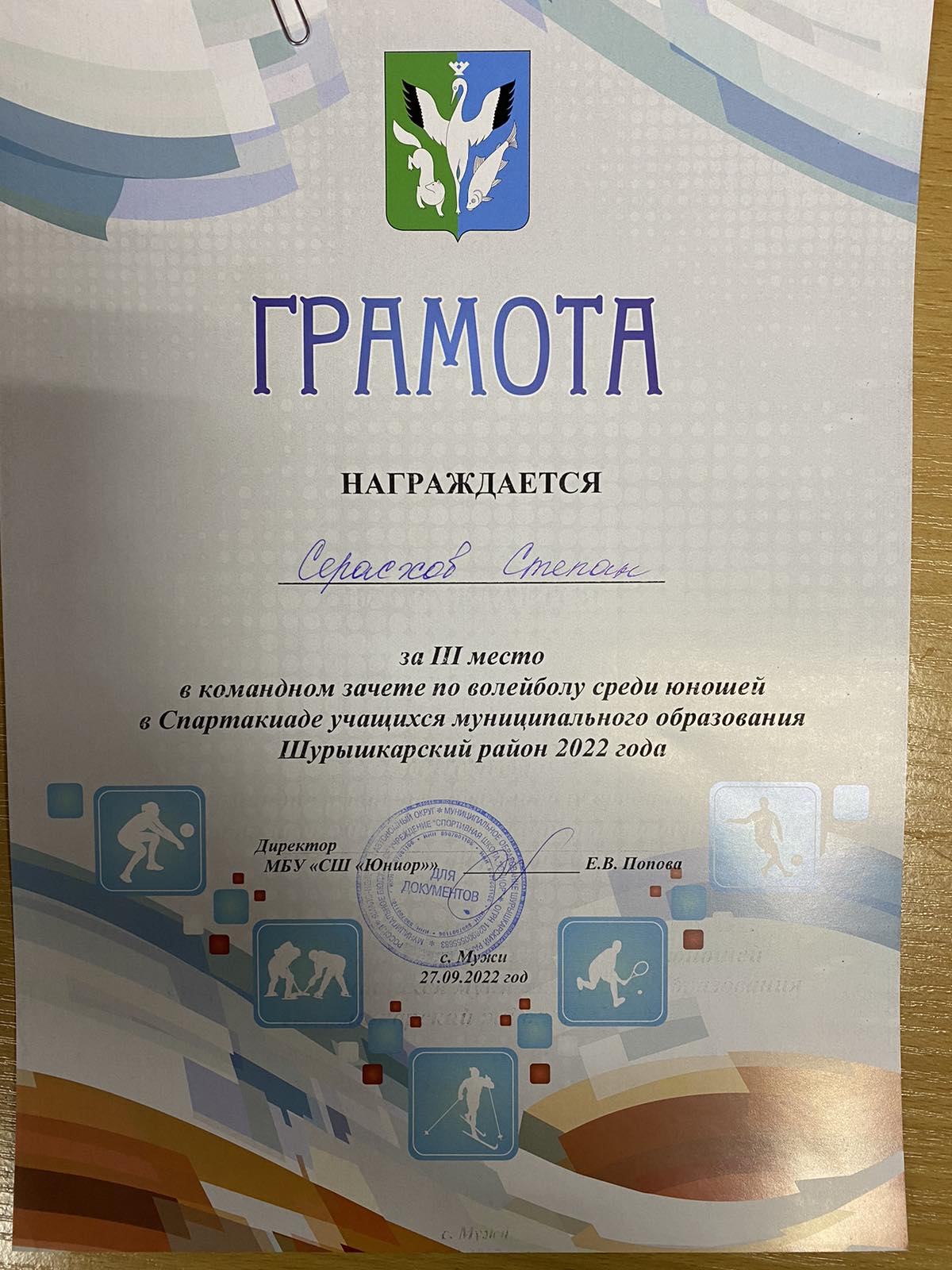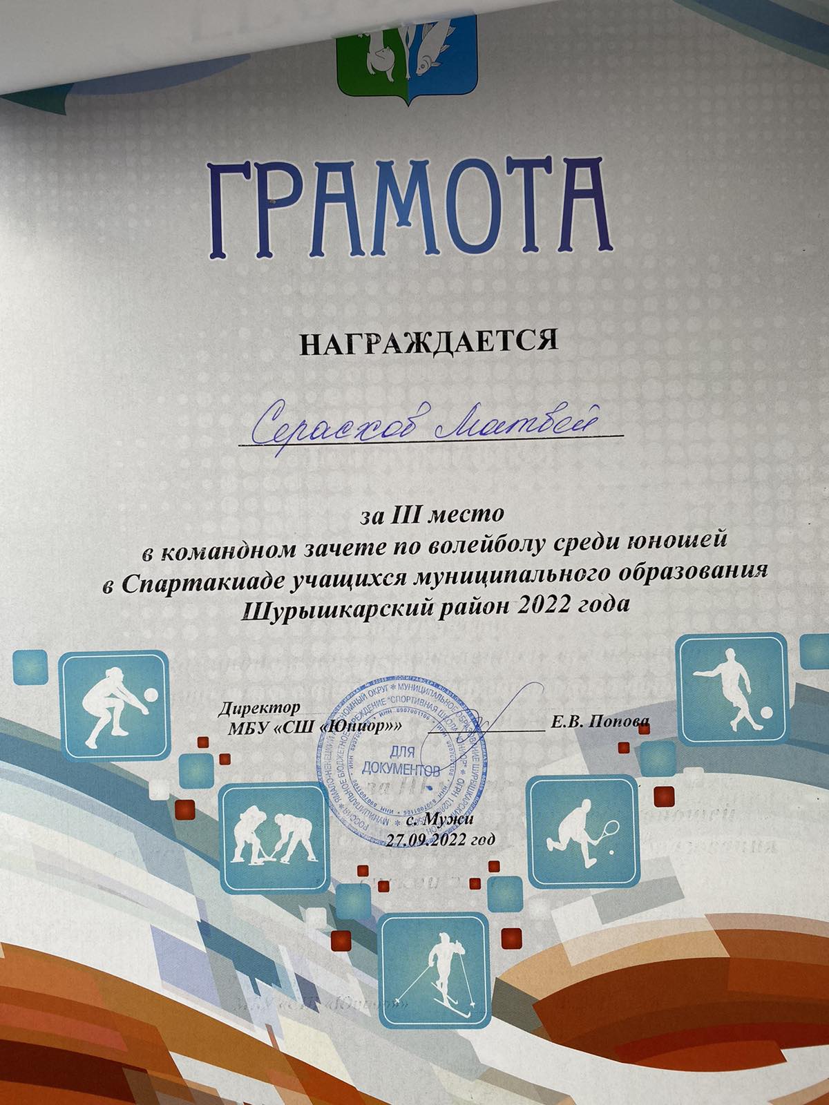 Серасхов Степан 3 место по волейболу