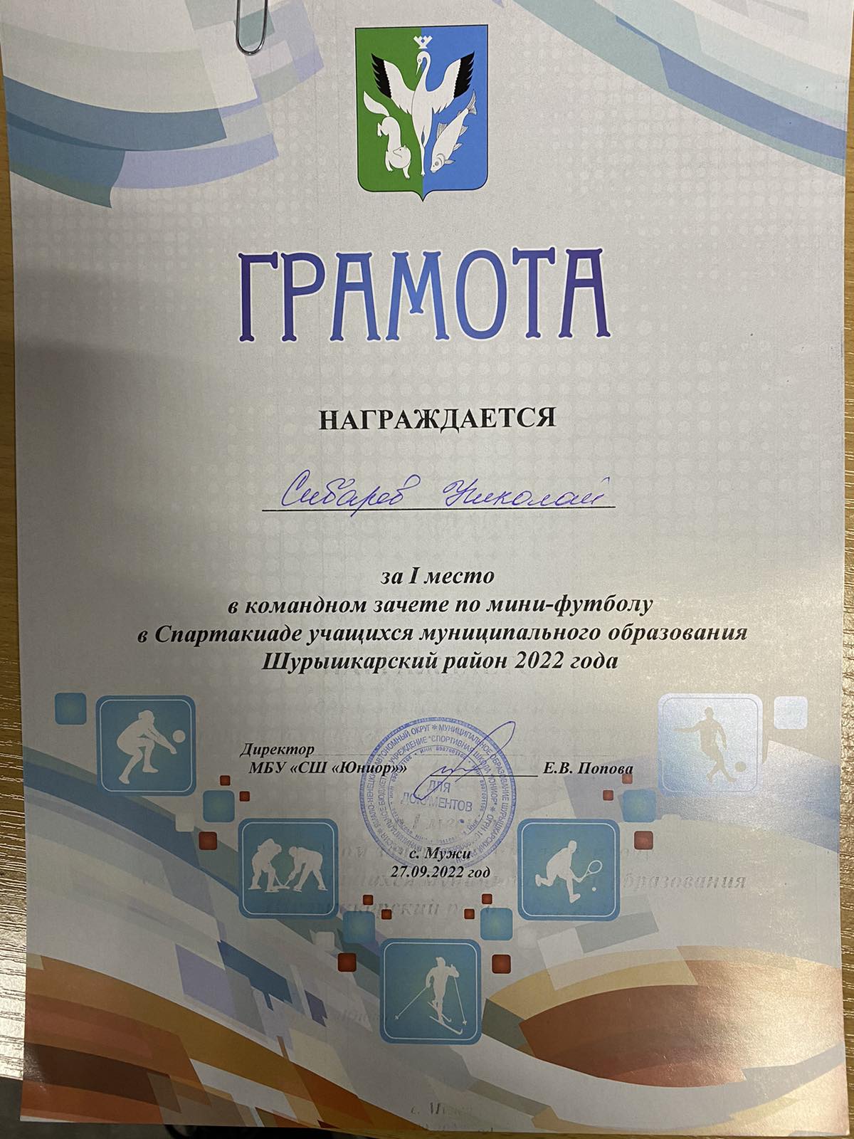 Сибарев Николай 1 место по мини-футболу