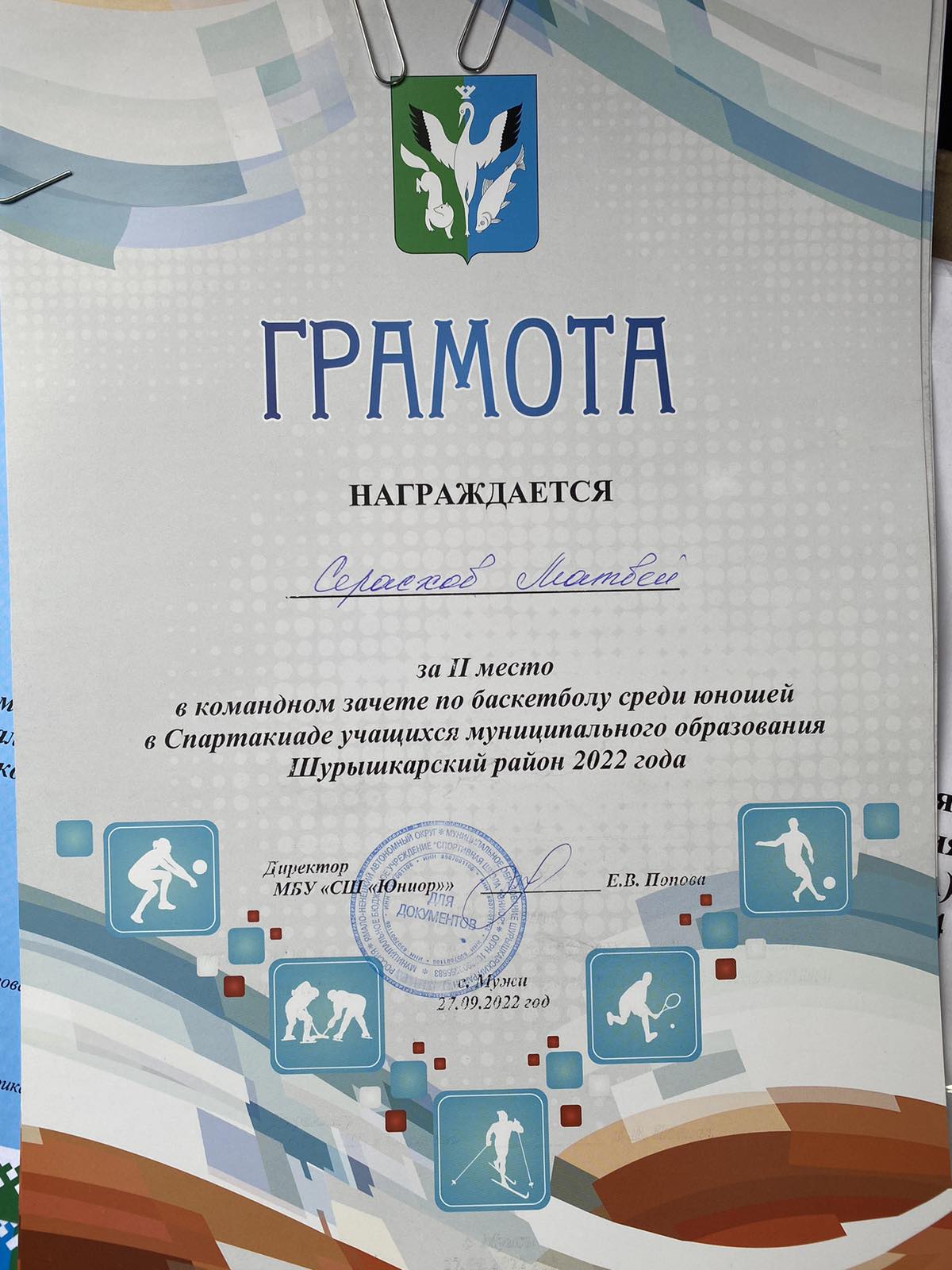 Серасхов Степан 2 место по баскетболу