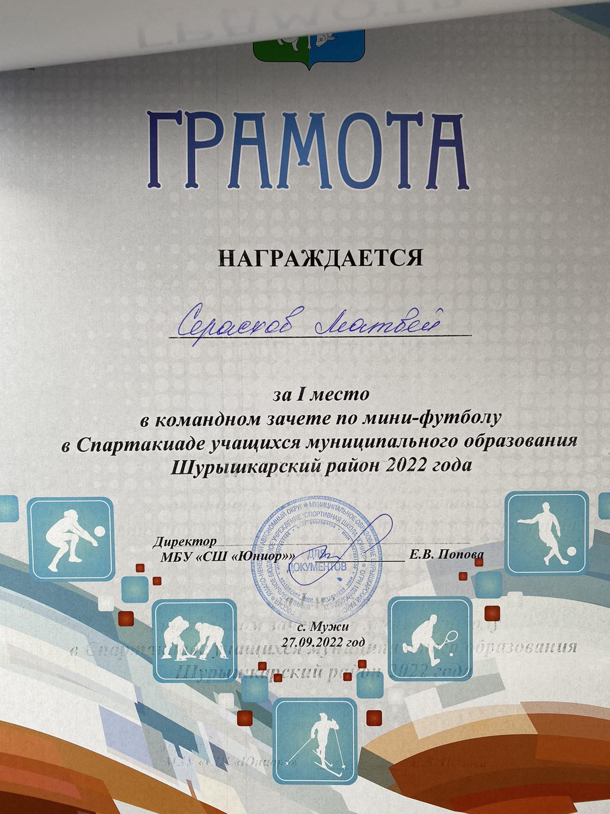 Матвей Серасхов, 1 место по мини-футболу