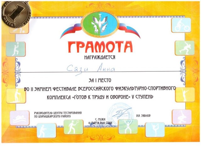 Анна Сязи, 1 место по настольному тенинсу .